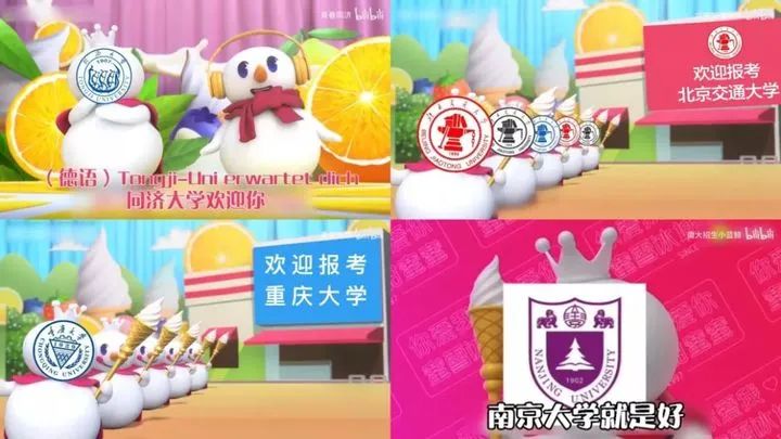 如今,B站作為最受年輕人喜愛的平台之一,承接了高校“發射火力”的戰場,紛紛祭出或逗趣或鬼畜的宣傳片,不遺餘力搶奪生源。