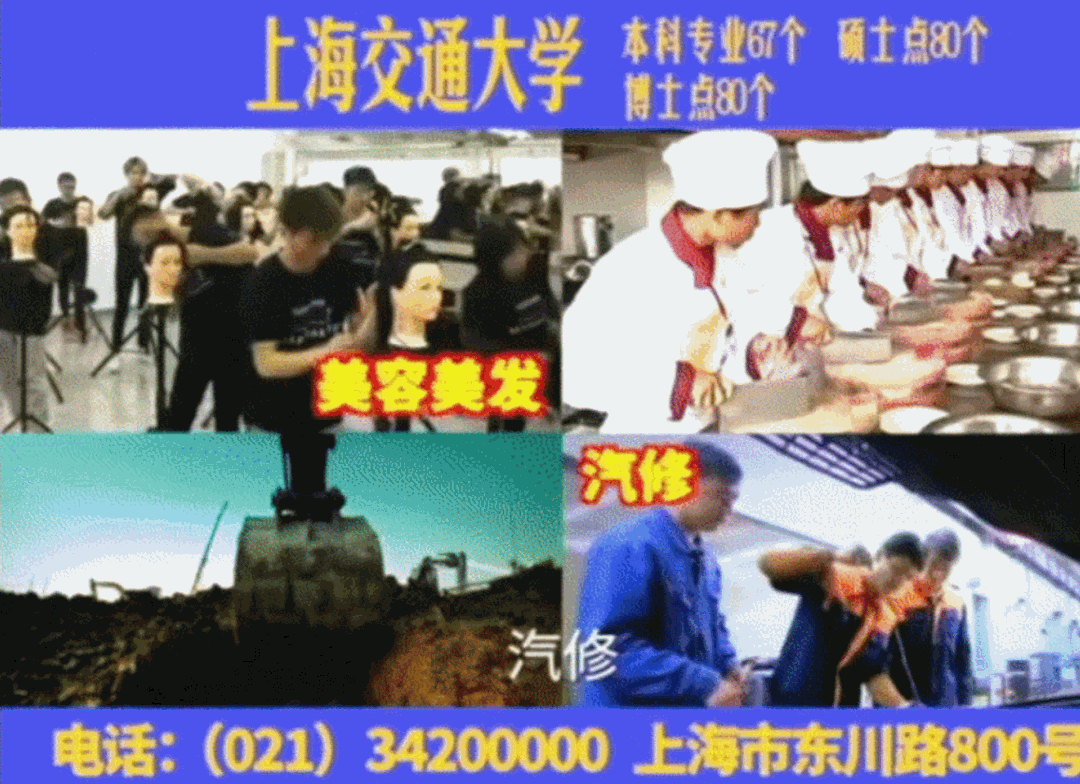 上海交通大學就有這麼一版宣傳片,自稱“東川路男子職業技術學院”,提出爆炸性觀點:無論你考多少分,只決定你在哪家學校打遊戲,在哪裏收快遞;既然都是600多分,何不選擇上海交大!