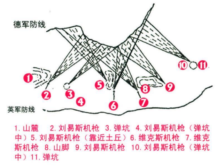 ▲英軍輕重機槍配置方式,兼顧曲射和直射需求