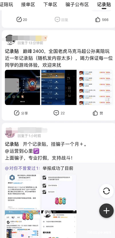 在一些遊戲陪玩的貼吧裏,存在着“記錄貼”板塊,有老闆記錄和安利自己點的陪玩,更多的是陪玩記錄自己接過的單子,有些陪玩還會貼上和老闆的聊天和轉賬記錄,展示自己和老闆之間的“深情厚誼”。