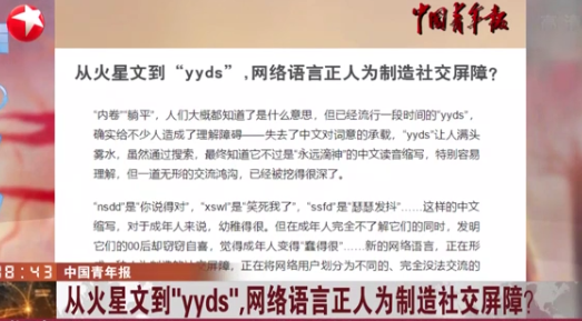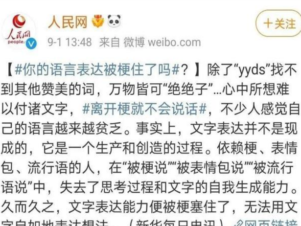 前些天,有媒體發表文章,認為如今“yyds",”絕絕子“等流行語現象是一種文字表達能力的退化,認為很多網民們已經“不用網絡用語就不會好好説話。”這兩天又有一篇文章批評今年流行起來的”傘兵“一詞,認為“玩梗要適度,不要污名化傘兵。”