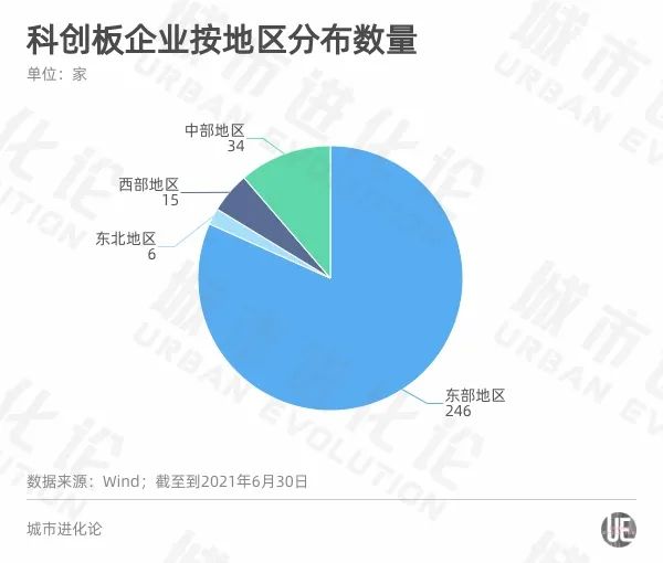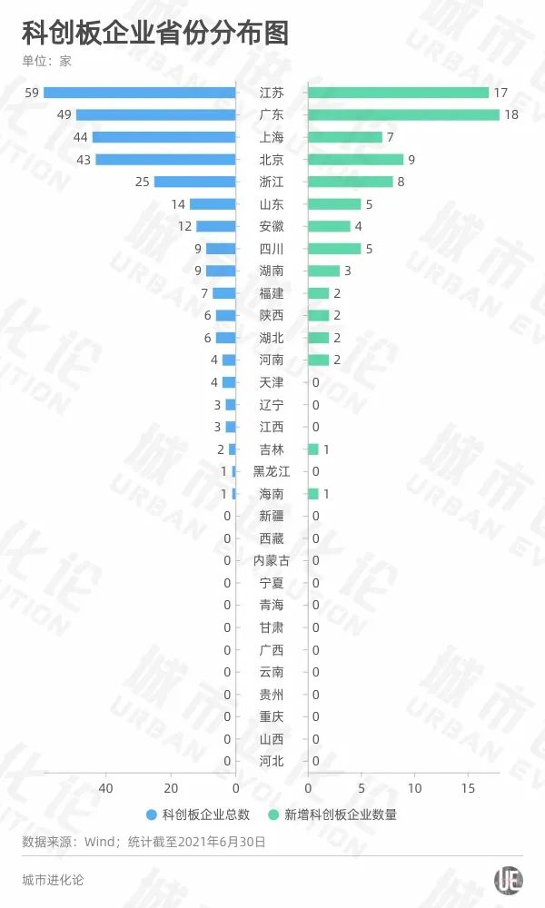 由上圖可見,截至2021年6月30日,31個省份中還有12個省依舊在科創板上沒有表現,其中10省均來自西部地區。