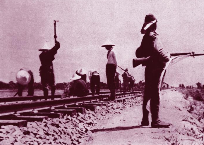 ▲日軍強迫中國勞工修鐵路