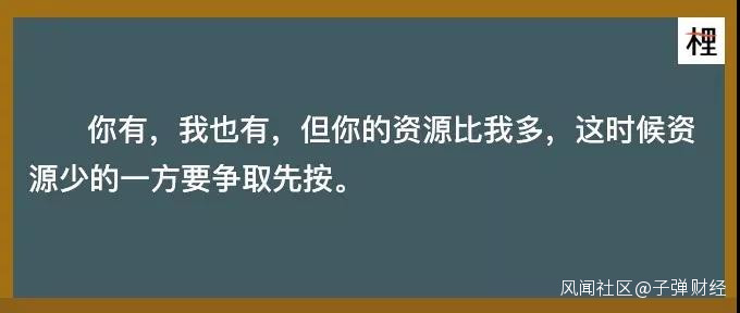 3、強也要快上一章節裏我們討論了,弱者先按核按鈕,能贏得生存權。這就延伸到另一個問題——強者如果優勢明顯,還用按核按鈕麼?