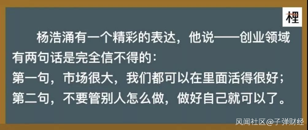 楊浩湧説,這兩句話恐怕是創業領域最大的謊言。前者是用來騙投資人的,後者是用來騙媒體的。