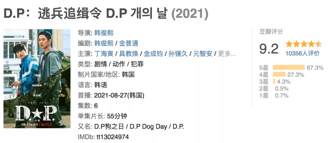 由丁海寅、具教煥主演的《D.P:逃兵追緝令》以安俊浩和韓浩烈的視角,講述了軍人在部隊遭受虐待,迫不得已逃出軍營的故事。