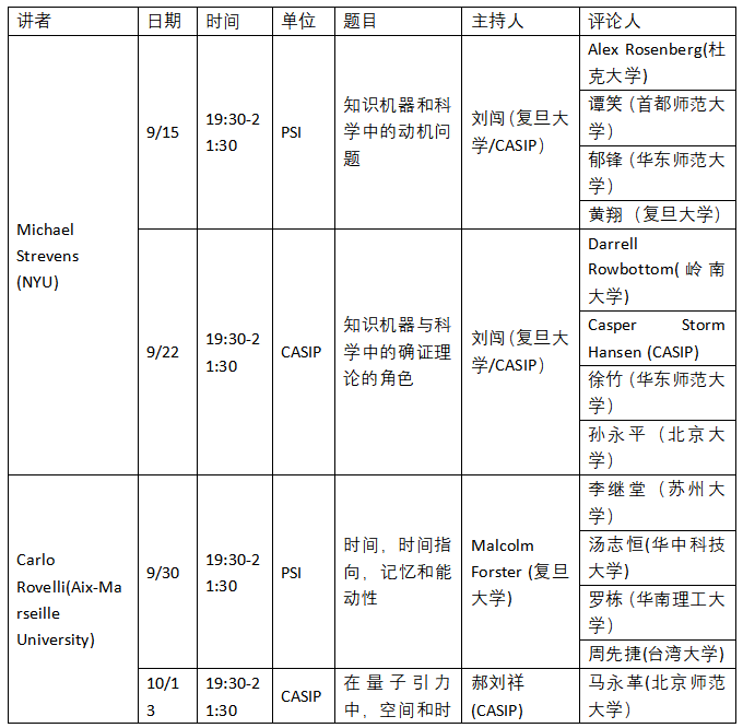 中國科學院哲學研究所(CASIP)與復旦大學智能科學與智能哲學研究中心(PSI)將於本秋季學期在Zoom上聯合舉辦主題為科學與哲學的國際系列講座,《返樸》作為協辦方將全程於B站直播(直播賬號:返樸科普)。邀請的報告人或為具有崇高的哲學情懷、廣闊的哲學視野和深邃的哲學思想的哲人科學家,或為具有理性的科學精神、廣博的科學知識和嚴謹的科學思想的科學哲學家。報告內容聚焦於科學前沿中的基本哲學問題,以及與哲學緊密相關的科學問題。(講座安排詳見下表)