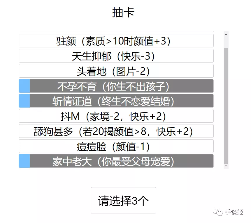 實際演示一下,姬隨便選3個天賦……這能算得上是天賦嗎?