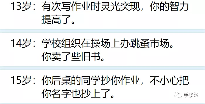這些事件並不意味着一定和自己的年歲有關,但這開局看起來挺開心,又有組織力又自己寫作業,雖然姬一點智力也沒加,還是挺聰明的。