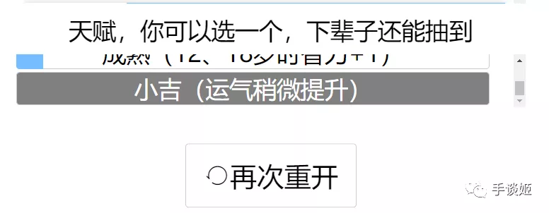 那麼,手談姬今天介紹的就是一個和“人生重來”有關的遊戲,名字叫**《人生重開模擬器》**,是一款網頁遊戲。