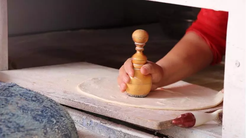 唯一的區別是,由於喀什當地乾燥的氣候,讓麪包鬆軟的推手:酵母菌不易存活滋生。聰明的當地人發明了一種“饢戳”,以細密的鐵針在饢餅表面戳出無數細孔,以物理方式造就蓬鬆的口感。