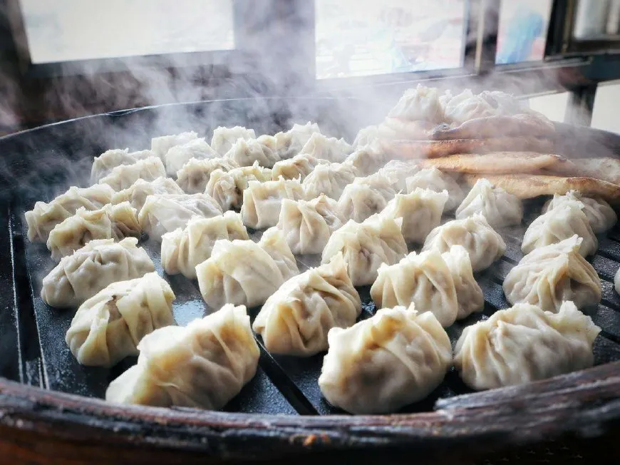 當地人把肥瘦相間的羊肉切成小粒,與洋葱混合後做餡,包進小麥麪皮裏蒸制。最終獲得一種羊肉綿軟可口、羊油酥化滲入麪皮中的食物。維語稱之為“皮提曼塔”,這其實是漢語“饅頭”的反向音譯。
