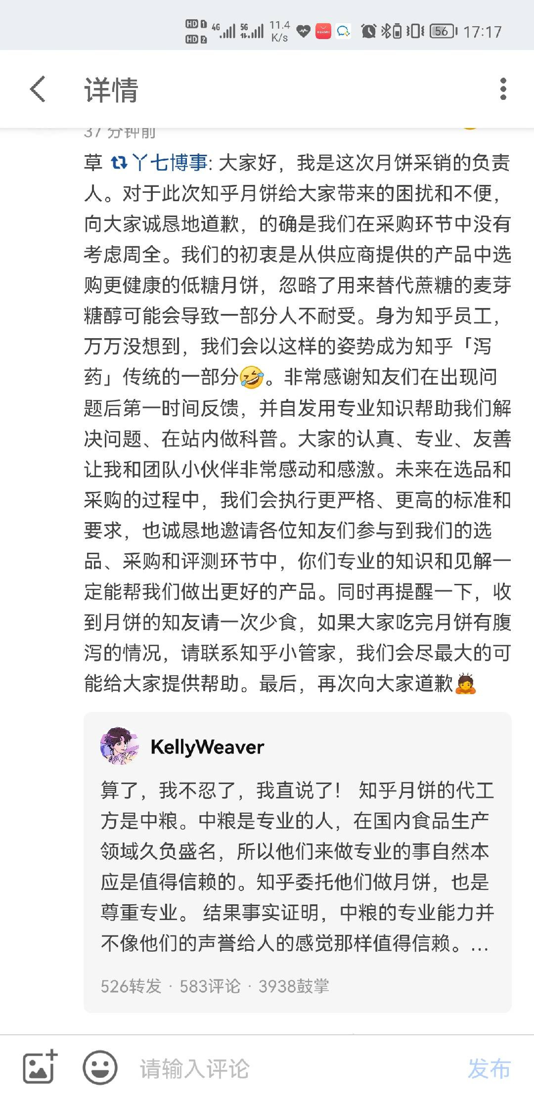 這些輿論發酵後,知乎現在直接把與月餅有關的回答及提問全都封掉了,控評也在進行中……