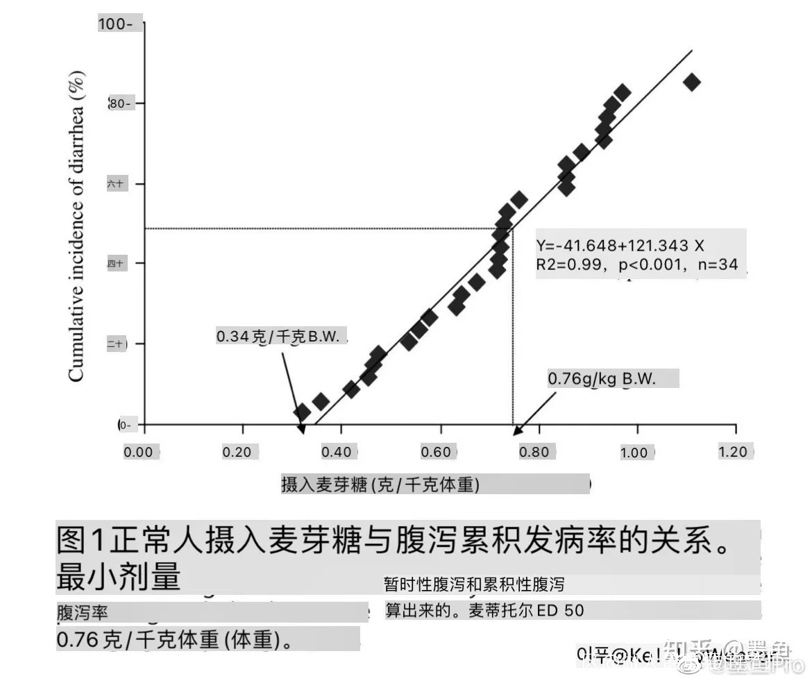 從配料表來看,知平月餅當中,大量使用了麥芽糖醇,而根據發在EJCN上的一項人體實驗,對一位60kg的女性,麥芽糖醇引起腹瀉的閾值僅20g,達到50g的時候就能使一半的被試腹瀉。這個量換算成知乎月餅,大概就是一餅或兩餅。糖醇這個特性,其實我之前在想法里科普過,看來知乎月餅的配方師沒關注我,這下吃虧了啊