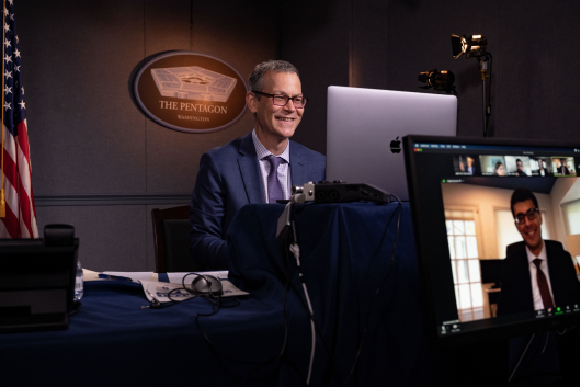 美國防部主管政策的副部長科林·卡爾(Colin H. Kahl)在2021年卡內基國際核政策大會上發表演講(美國防部圖片)