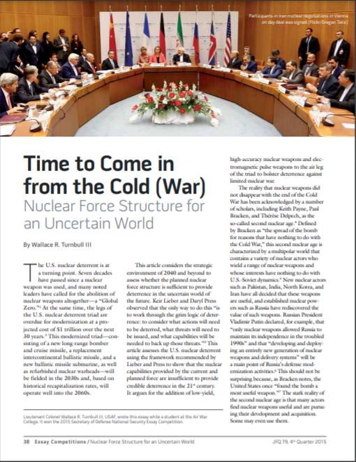 5. By Wallace TurnbullⅢ, Time to Come in from the Cold (War): Nuclear Force Structure for an Uncertain World, Joint Force Quarterly 79 (4th Quarter, October 2015).