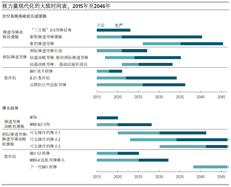 美國核力量現代化規劃的大致時間表(資料來源CBO 2017)