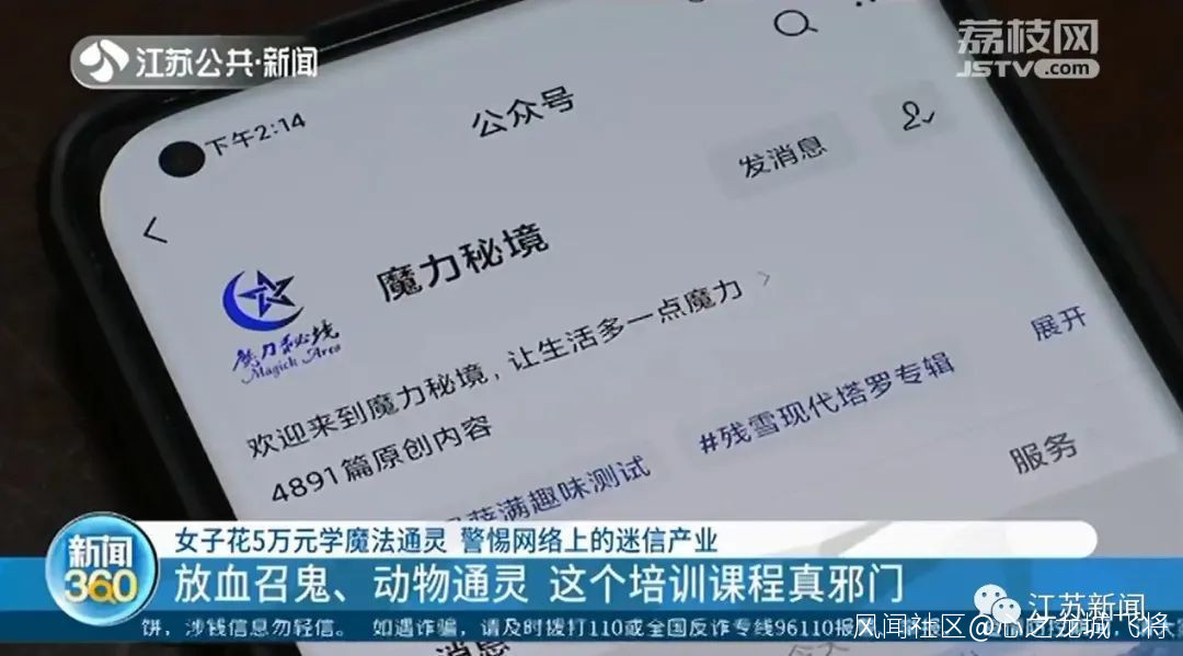 2740人蔘與220評論最近,來自安徽的劉小姐反映:今年1月份開始,她在南京一家叫做"魔力秘境"的機構,學習魔法、通靈等課程,據説學了之後能召喚鬼魂,還能和動物通靈。