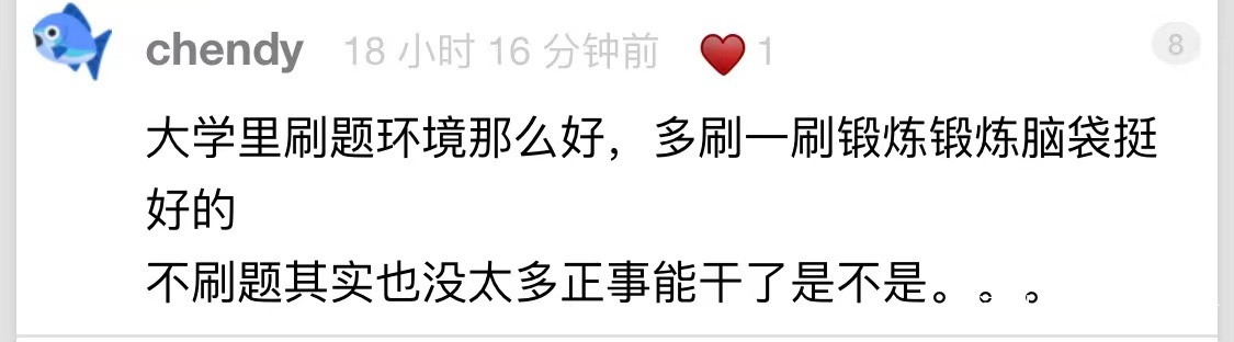 有網友説,大學刷題環境那麼好,多刷刷可以鍛鍊腦袋。