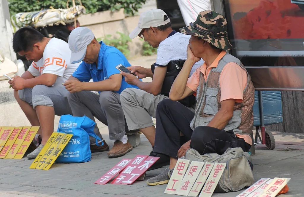 煙頭是在這裏蹲活兒的人留下的,他們的面前通常會放幾塊牌子,寫着“電工、管道、瓦工”之類的,牌子越多找到工作的機會就越大。