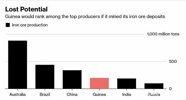 這些鐵礦大多分佈在幾內亞南部的山區,大部分都可以露天開採。