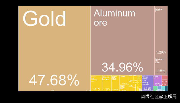 幾內亞出口產品結構,黃金和礦石佔了大頭