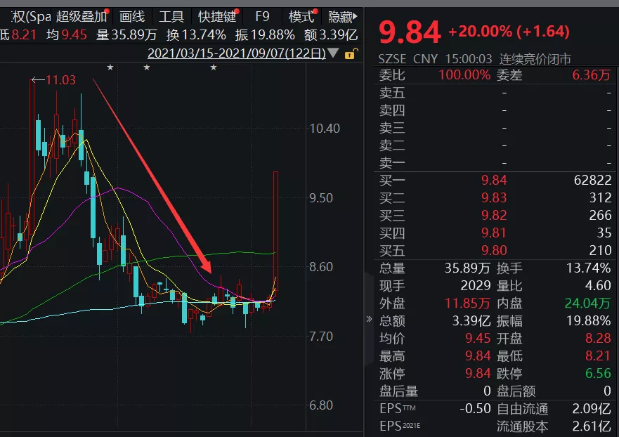沒曾想,7日早盤,中青報直線拉昇,瞬間拉昇至漲停。截至收盤,還有6萬多手買單壓在漲停板上。