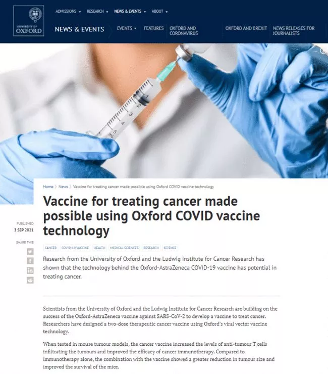 值得一提的是,該疫苗建立在牛津大學的疫苗技術之上,與阿斯利康COVID-19疫苗的技術相同。今年晚些時候,該疫苗背後的團隊將啓動一項涉及80名非小細胞肺癌患者的1/2a期臨牀試驗。