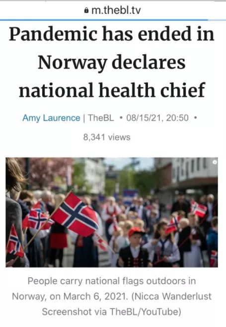 其實,8月15日挪威國家衞生主任已經宣佈:大流行結束,取消和新冠疫情有關的限制措施。