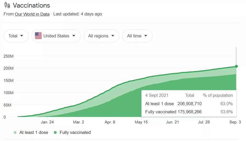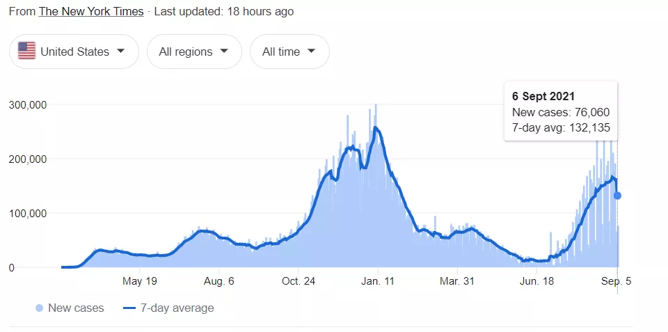 美國今年1月開始接種,9月重攀高峯,或許説明疫苗產生的抗體只能維持半年甚至更短。早期接種的早就沒有保護力了,更何況還有Delta變異病毒造成的免疫逃逸。不管怎麼説,美國如今一邊新增不斷,一邊視而不見,也是看懵逼了!