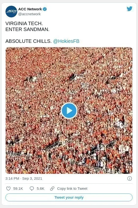 6.5萬名觀眾擠爆了弗吉尼亞理工大學的體育場,齊聲歡呼上下跳躍,甚至引發了一場小型地震。