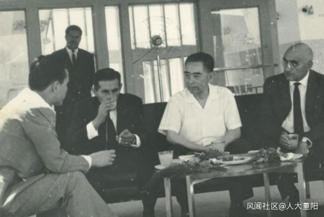 1966年9月,周恩來總理訪問羅馬尼亞途經阿富汗,阿富汗蘇爾坦親王(喝水者)迎接,華黎明(左一)擔任翻譯。