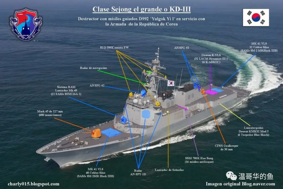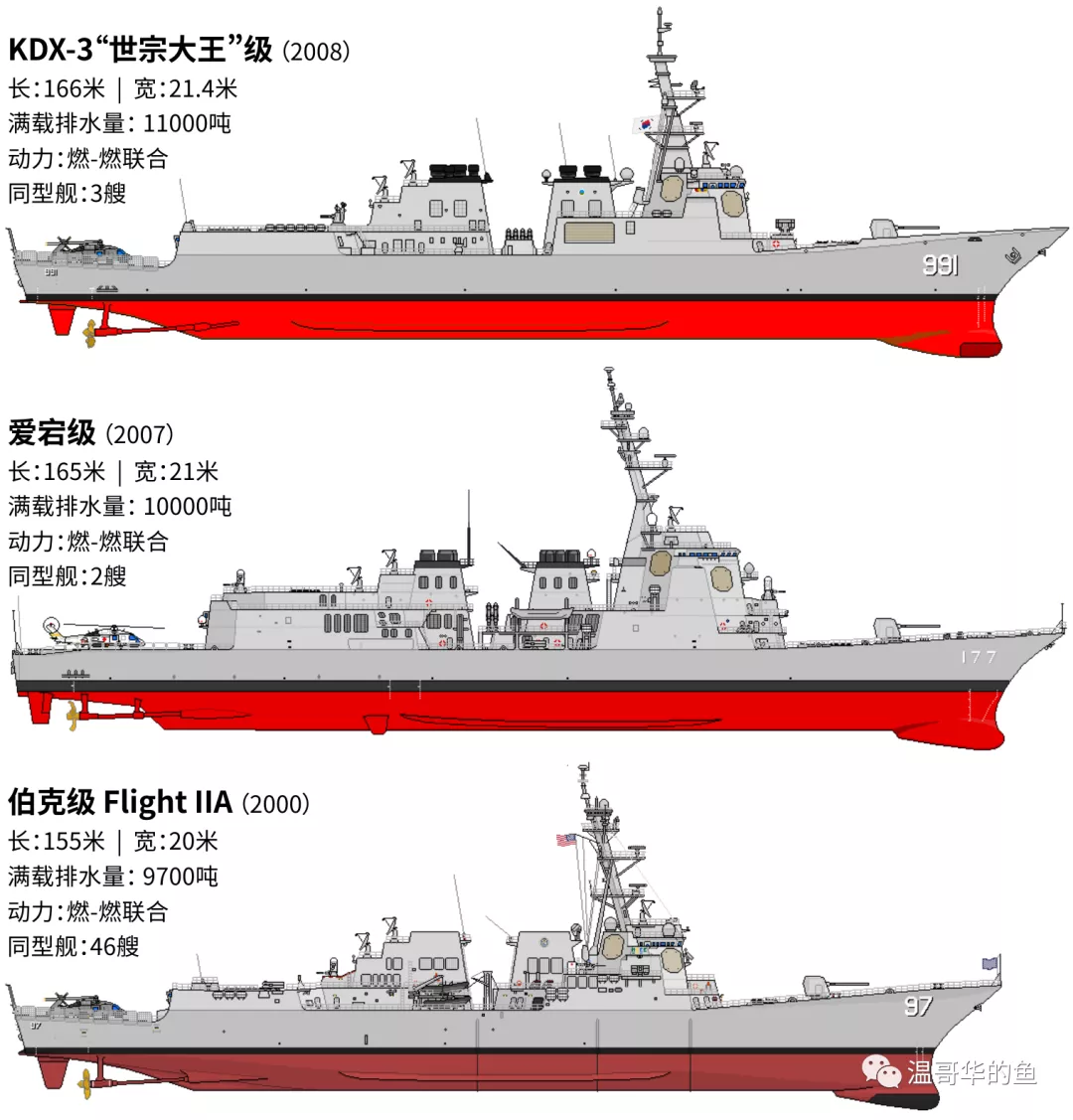 韓國海軍的驅逐艦也按KDX韓國實驗驅逐艦計劃分3個階段發展,分別研製了KDX-1“廣開土大王”級、KDX-2“忠武公李舜臣”級和KDX-3“世宗大王”級,三級驅逐艦的噸位和技術水平提高得非常快,發展速度令人矚目。