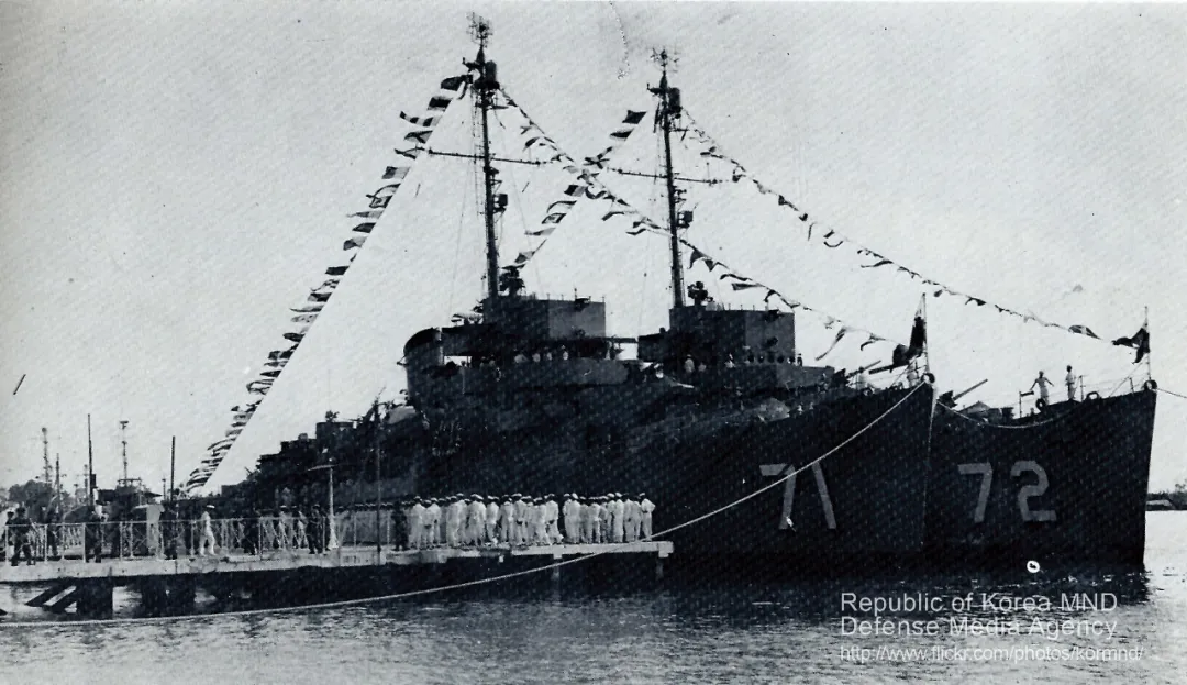 2個月後朝鮮戰爭爆發,朝鮮海軍擁有1.37萬人,110艘艦艇;韓國海軍只有不足7千人,33艘艦艇,處於下風。持續三年的戰爭中聯合國軍向韓國海軍提供了不少裝備,單美國海軍就轉讓了28艘艦艇,包括5艘“塔科馬”級護衞艦。1953年9月,規模擴大後的韓國海軍成立了大韓民國海軍艦隊。