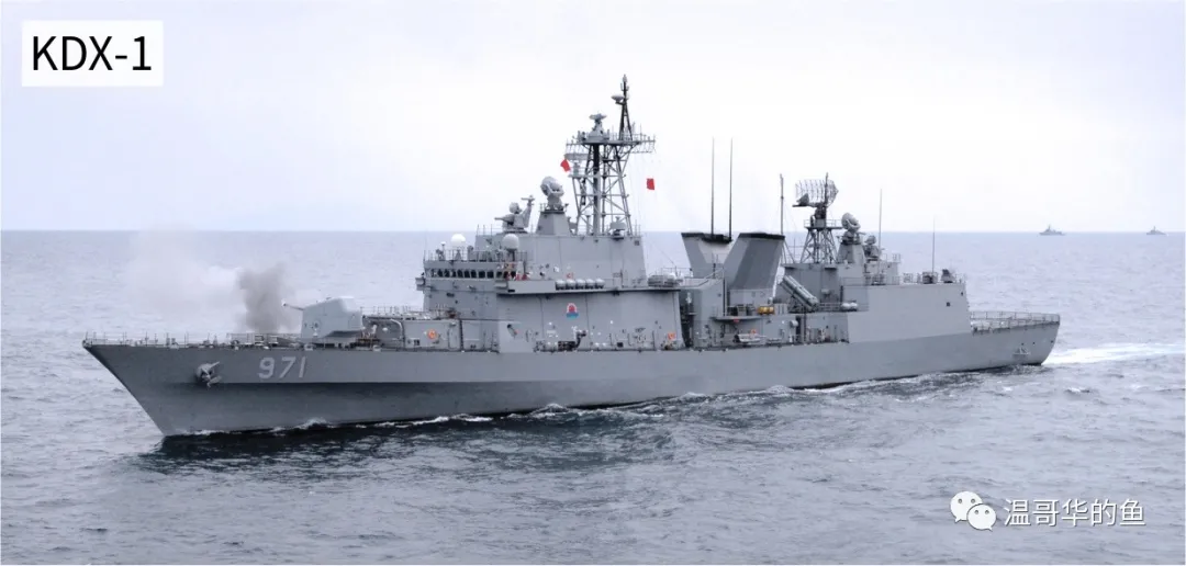 KDX-1從1986年開始設計,1998年服役,是韓國海軍第一型配備艦空導彈和近防武器系統的水面艦艇。滿載排水量3900噸,採用柴燃聯合動力,最高航速30節,配備一門奧托·布萊達127毫米主炮、2座4聯裝“捕鯨叉”反艦導彈、1座16單元的Mk48垂直髮射系統,發射“海麻雀”近程防空導彈。作為一艘通用驅逐艦,KDX-1的防空、反潛、反艦能力相當均衡,可以攜帶2架“大山貓”艦載直升機,在當時都屬一流水平。