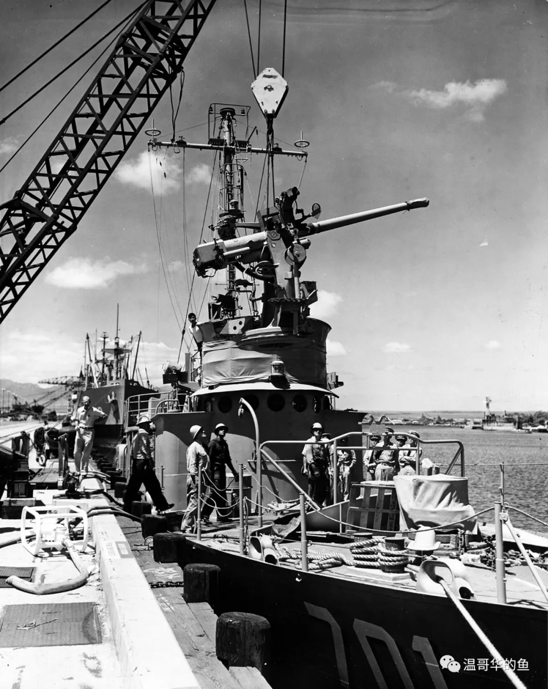 > 1950年3月在珍珠港福特島安裝主炮的“白頭山”號