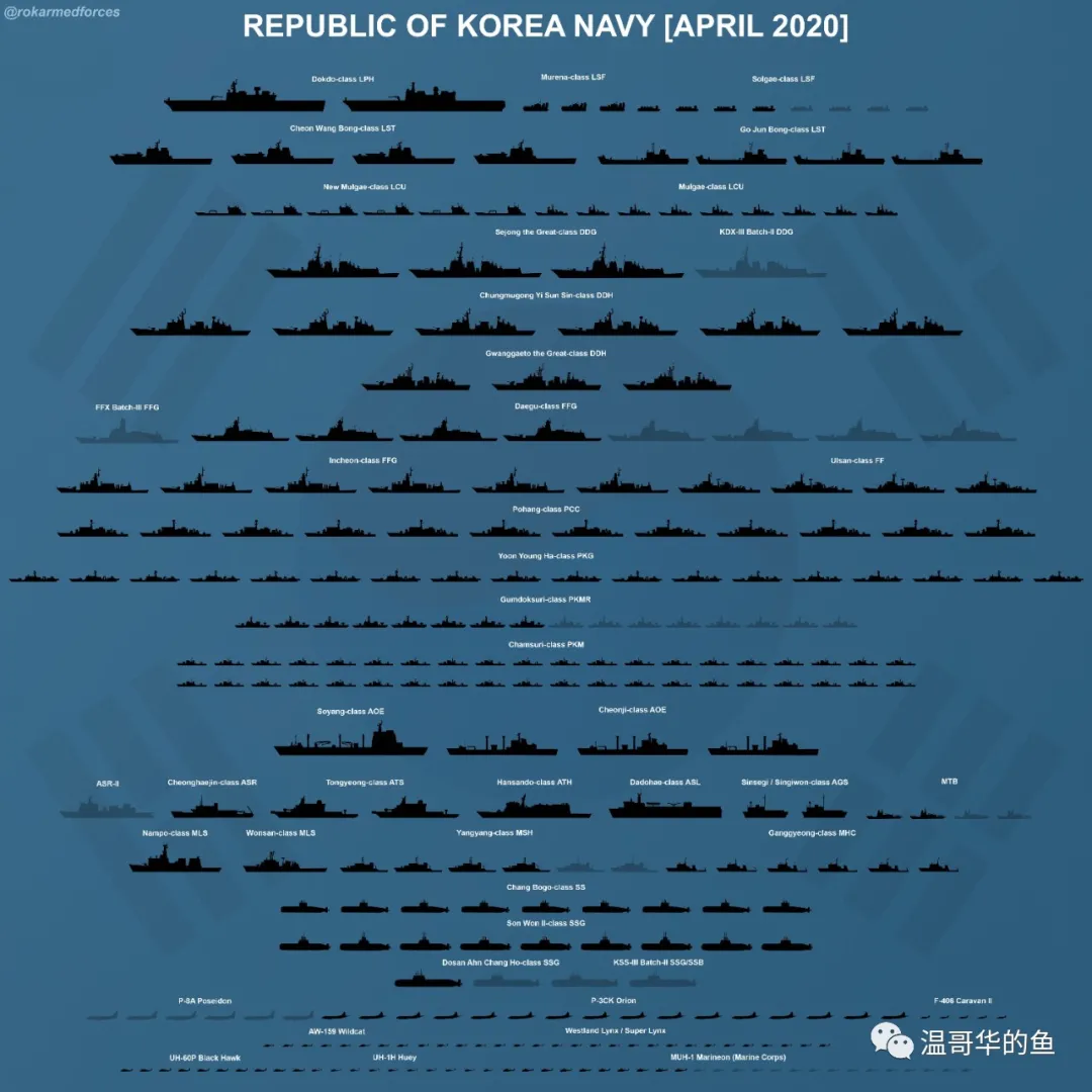 注:韓國海軍的編制名稱翻譯非常特殊,不同的資料上有各種翻法,我專門請教了在駐韓大使館工作的同學(公使銜參贊,韓國問題專家),他幫我一個一個名詞進行了中、韓、英文的校對,特此感謝。