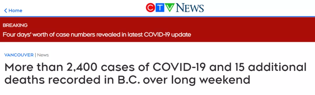 今天,繼阿爾伯特省怒報4天新增4903例新增17死之後,BC的最新疫情數據也磨磨蹭蹭中在下午公佈了,果然“一鳴驚人”。