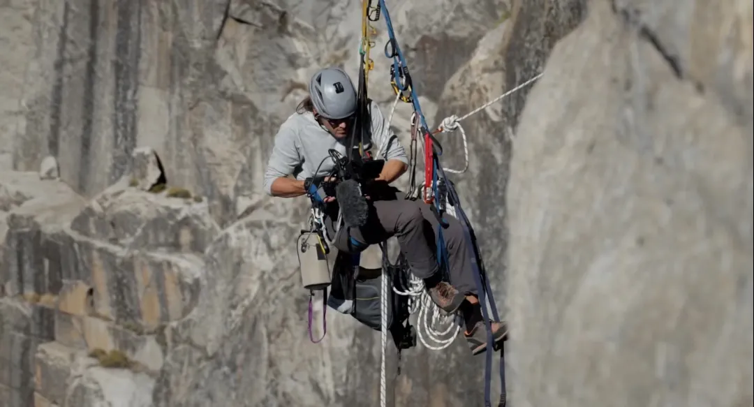 每個攝影師的位置都需要精心設計,既不能被其他攝影機拍到還需要將懸掛自己的繩子隱藏起來。他們都清楚的知道自己需要捕捉到什麼樣的鏡頭,在什麼樣的方位上需要如何拍攝,何時推進和移動鏡頭來確保“隱形”拍攝,把對Alex的攀巖時的外部影響降到最低。這種隱形式拍攝滿足了Alex的希望被拍攝,但不希望感受拍攝的自在。