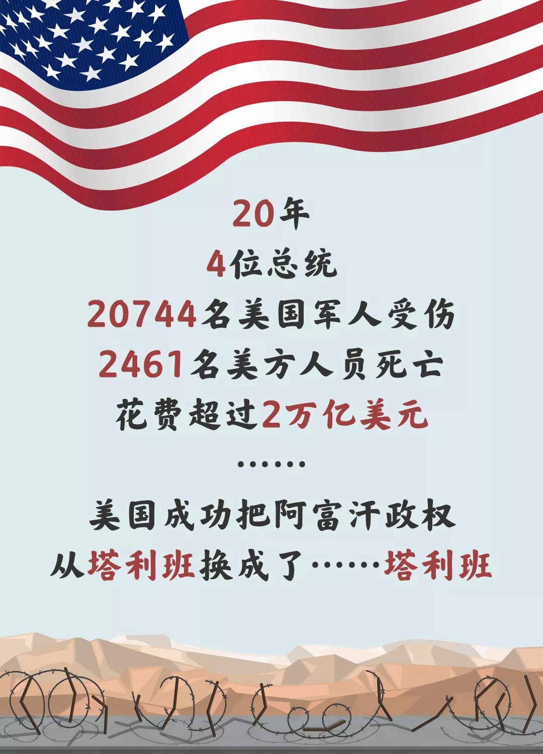拜登在2021年初的慕尼黑安全會議上高調宣佈“美國回來了”,極力營造美國重返世界、再度擴張的印象,但“喀布爾時刻”用事實打臉,“美國回來了”秒變“美國回家了”。共和黨更諷刺説:“塔利班回來了,而不是美國。”