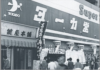 二戰之後的日本,一切都百廢待興,整個社會經濟開始高速的增長,消費需求旺盛促進了零售行業的發展,並且出現了集團化和連鎖化經營的趨勢。而在這之前還主要是夫妻小店的形式存在於街頭。