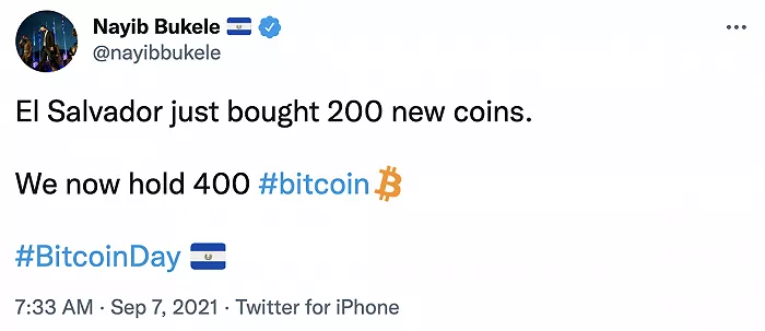 13. 世界首個!薩爾瓦多正式將比特幣列為法定貨幣,已購買首批400個