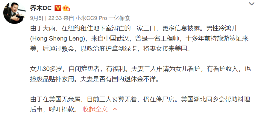 三是被公知忽悠,抱着幻想出去的。這一類就比較慘了。有一段時間網上瘋傳着一些謠言,説是中國遲早要崩潰,晚出去不如早出去,就算是去越南、緬甸也比留在國內強。有些人就上了這樣的當,把國內的一切變賣乾淨跑了出去,甚至還通過了不正當的渠道。比如,前些年火過的“鳳姐”,還有去年死於新冠的河山碩、耿冠軍等。前幾天還傳出在紐約大雨中在地下室淹死了中國移民一家三口,這些人跑出去又是何必呢?