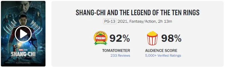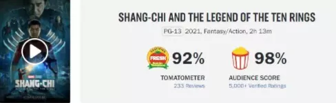 在最大票倉——中國大陸還未上映的情況下,海外的週末票房也達到5600萬美元。這意味着《尚氣》首週末的全球票房將達到1.46億美元。