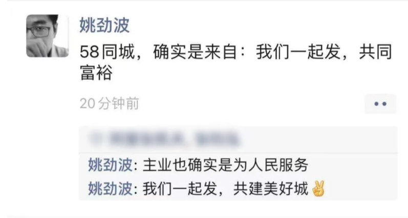 他這一發,也引得其他幾家公司的老闆也跟着發。58 同城的 CEO 姚勁波也跟着説:58 同城,是來自 “ 我們一起發 ”,即共同富裕。