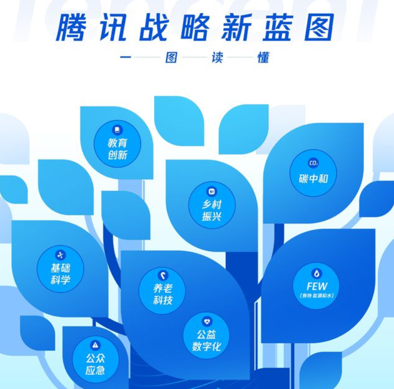 和阿里不同,騰訊的 1000 個億則更多的在 “ 可持續社會價值創新 ” 上面,主要集中在基礎科學、教育創新、碳中和、FEW( 食物、能源與水 )、養老科技和公益數字化等領域的前瞻性探索。