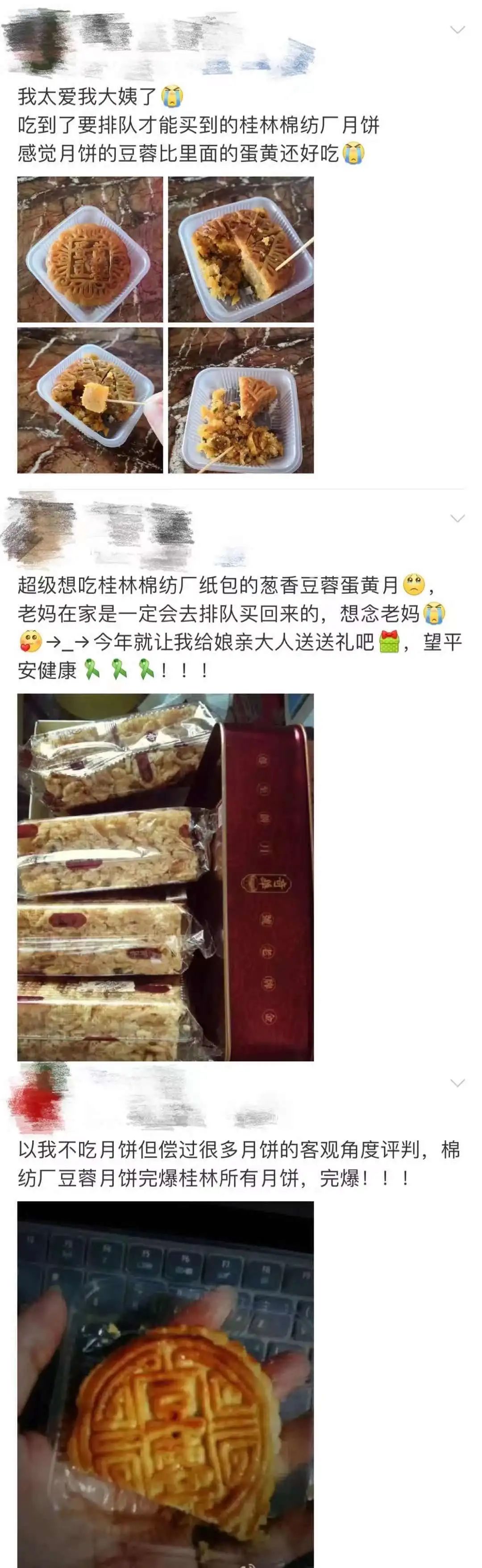 桂林棉紡廠的月餅是桂林人至今都要爭搶的暢銷月餅。當年棉紡廠的師傅們把學到的知識融入純手工工藝,於是誕生了豆蓉、豆蓉蛋黃月餅。
