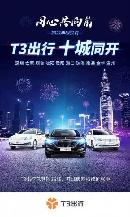 美團在時隔兩年以後,重啓自身出行業務,一次性開了34個直營城市。T3出行7月被傳出加緊連開15城,衝擊日單量百萬的目標;並且8月2日,10城同開,其中已經不僅限於一二線城市,開始着眼於下沉市場。