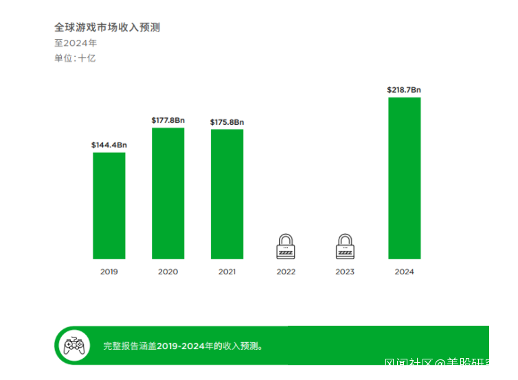 同時根據 Newzoo 發佈的《2021年全球遊戲市場報告》,2021 年全球遊戲市場將獲得 1758 億美元收入。隨着全球遊戲市場將以8.7%(2019年-2024年)的複合年增長率攀升,在2023年突破2000億美元大關。