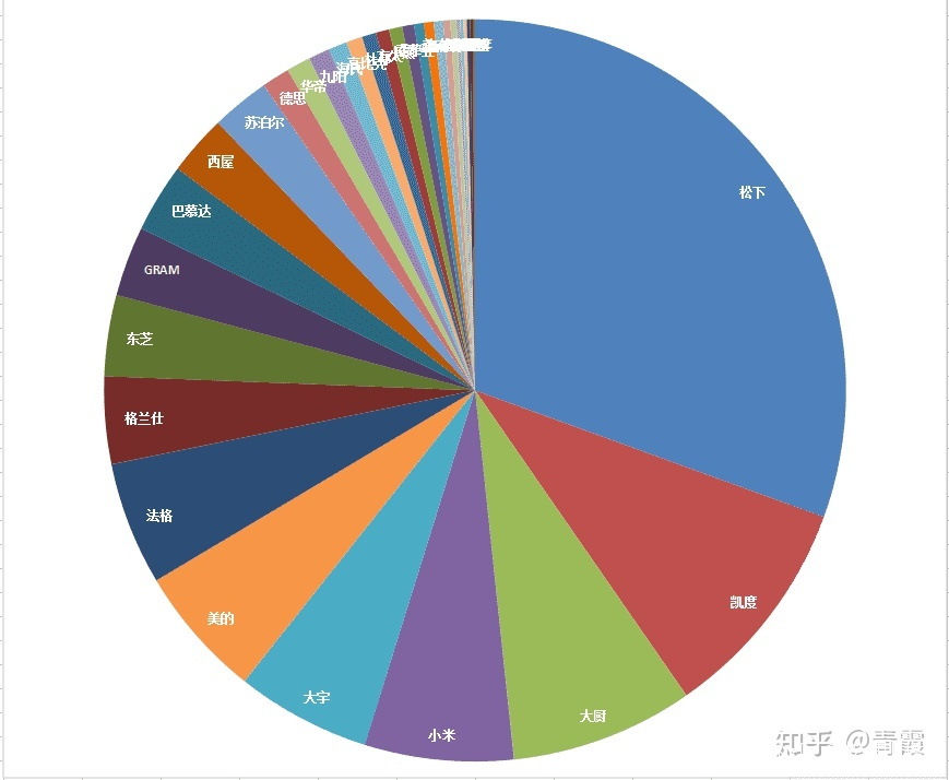 在小紅書上搜索“大廚蒸烤炸一體機”,顯示有超過4萬篇筆記;由知乎答主@青霞所整理的2021年6月1-3日天貓數據顯示,松下、凱度、大廚和小米分別佔據了這段時期內台式蒸烤箱銷量的30%、10%、8%、6%,雖然不敵松下,但作為新興品牌,大廚的表現仍然可圈可點。